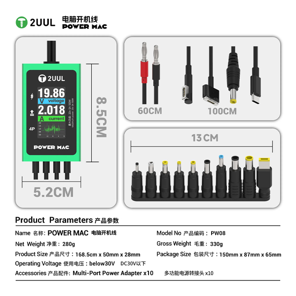 2UUL PW08 POWER MAC یک ابزار حرفه‌ای برای تعمیرکاران لپ‌تاپ است که با هدف