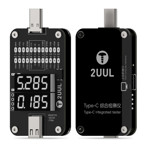 تستر 2UUL PW32 یک ابزار تخصصی برای بررسی ولتاژ، جریان و وضعیت ارتباط پورت شارژ Type-C در موبایل و تبلت است که بدون نیاز به باز کردن دستگاه، امکان تشخیص دقیق افت ولتاژ، نوسان جریان، قطع و وصل شدن شارژ، خرابی مسیر VBUS، اختلال در خطوط CC و D+ / D- و عدم فعال شدن شارژ سریع و PD را فراهم می‌کند. این دستگاه قابلیت تفکیک سریع ایراد بین کابل، آداپتور، فلت شارژ و برد اصلی را دارد، از نمایش هم‌زمان اطلاعات روی کامپیوتر پشتیبانی می‌کند، برای تست قبل و بعد از تعمیر، کنترل کیفیت دستگاه‌ و مصرف غیرعادی، و جلوگیری از تعویض اشتباه آی‌سی و فلت کاملاً مناسب بوده و دقت عیب‌یابی را در سطح حرفه‌ای به‌طور محسوسی افزایش می‌دهد.