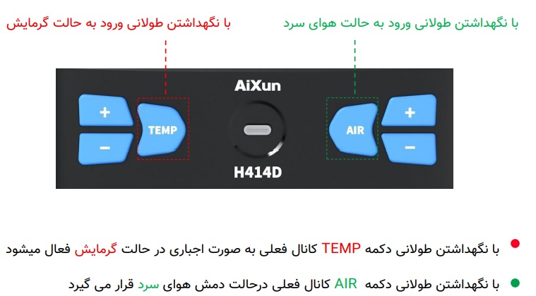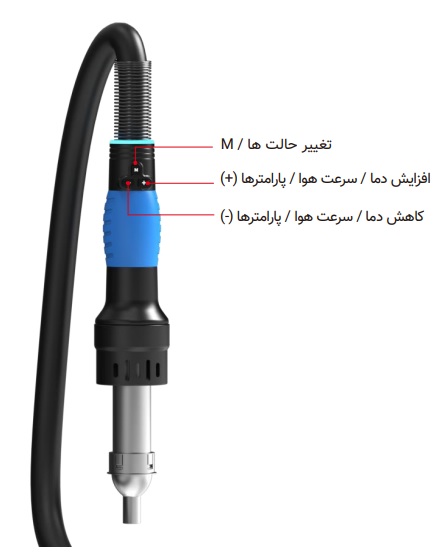 با نگه داشتن طولانی دکمه M روی دسته، دستگاه به حالت دمش هوای سرد اجباری وارد میشود.