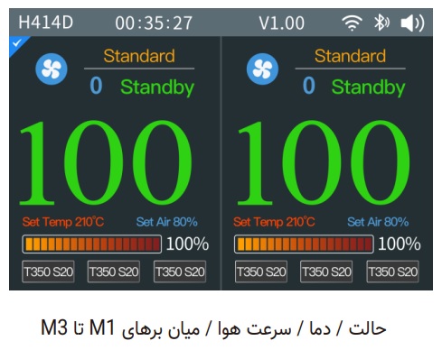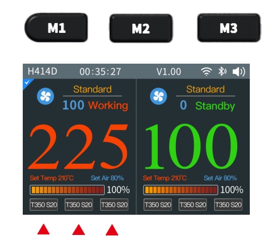 با یک بار فشار دادن دکمه M، وارد حالت انتخاب کانالهای میانبر دما M1 تا M3 میشوید و میتوانید سریع بین تنظیمات ذخیرهشده جابهجا شوید.