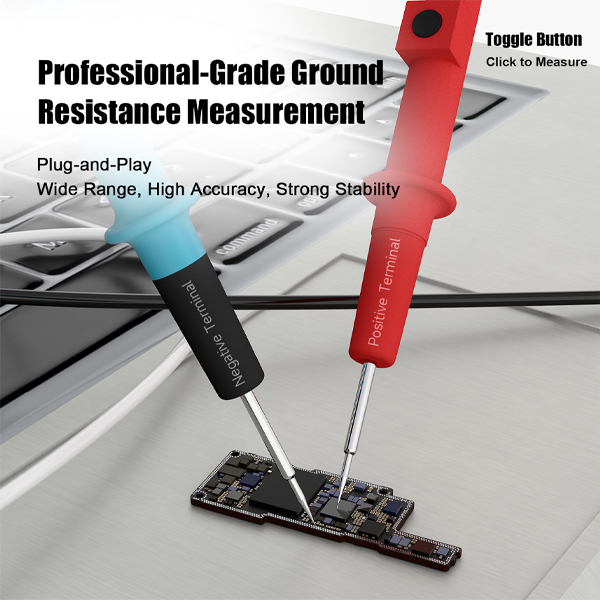 3. اتصال پراب‌ها: پراب قرمز را به زمین (GND) و پراب مشکی را روی پَدهای موردنظر برای اندازه‌گیری قرار دهید.